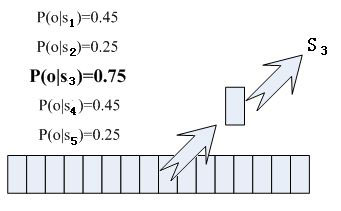 那每幀音素對(duì)應(yīng)哪個(gè)狀態(tài)呢?有個(gè)容易想到的辦法,看某幀對(duì)應(yīng)哪個(gè)狀態(tài)的概率zui大,那這幀就屬于哪個(gè)狀態(tài)。比如下面的示意圖,這幀在狀態(tài)S3上的條件概率zui大,因此就猜這幀屬于狀態(tài)S3。
