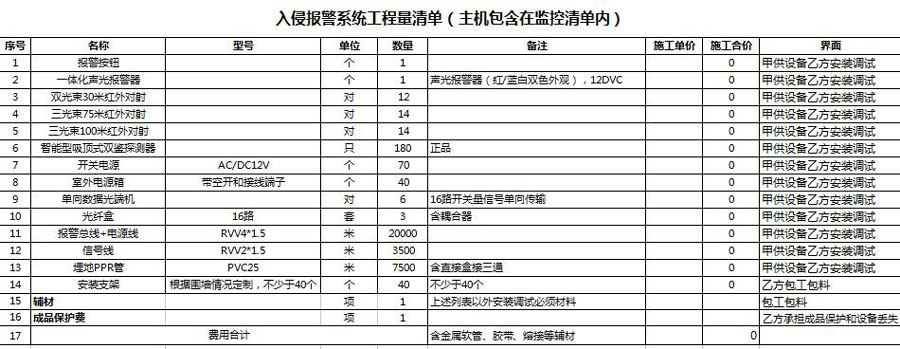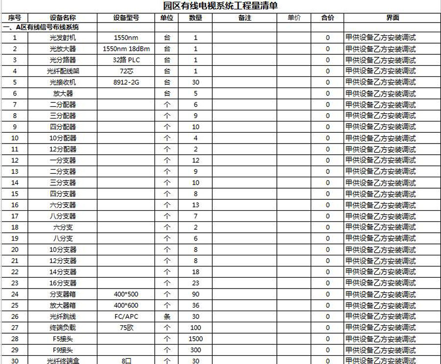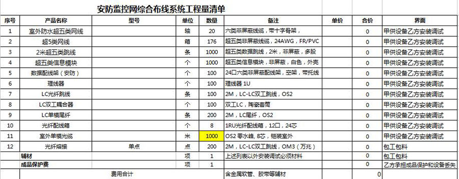 對于設(shè)計(jì)人員難的是什么?是清單,對施工承包人員報(bào)價(jià)難的是什么?是清單,對項(xiàng)目管理人員學(xué)習(xí)系統(tǒng)配置對有利的是什么?沒錯(cuò)還是清單!工程有主要有哪些子系統(tǒng)組成,由視頻監(jiān)控、入侵報(bào)警、電子圍欄、一卡通系統(tǒng)、音視頻系統(tǒng)、閉路電視(衛(wèi)星電視)、綜合布線系統(tǒng)、網(wǎng)絡(luò)設(shè)備、橋架管路等系統(tǒng)。
